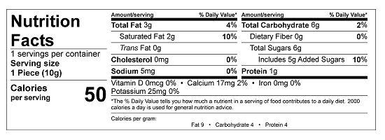 INGREDIENTS: Milk chocolate (sugar, cocoa butter, cocoa mass, whole milk powder, soy lecithin [emulsifier], and natural vanilla extract).