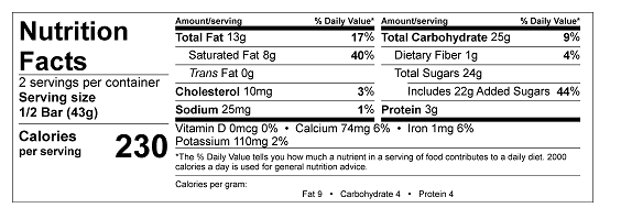 INGREDIENTS: Milk chocolate (sugar, cocoa butter, cocoa mass, whole milk powder, soy lecithin [emulsifier], and natural vanilla extract), toffee bits (sugar, corn syrup, palm oil, evaporated milk, salt, natural and artificial flavors, and soy lecithin), sea salt, and artificial caramel flavor.