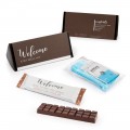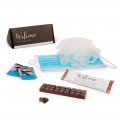 Our Stay Well kit is sleekly packaged and includes essential PPE items including personal sanitizer, gloves and masks as well as a dark chocolate Espresso 100 calorie bar to put a smile on their faces. Safe, Secure and Memorable, stays begin at arrival with our Stay Well kit. These are perfect to give out to guests upon entry to the hotel, at the front desk or placed in their clean, secure room during room set up. Packed in a sealed package, these thoughtful kits are a perfect welcome amenity for your guests.